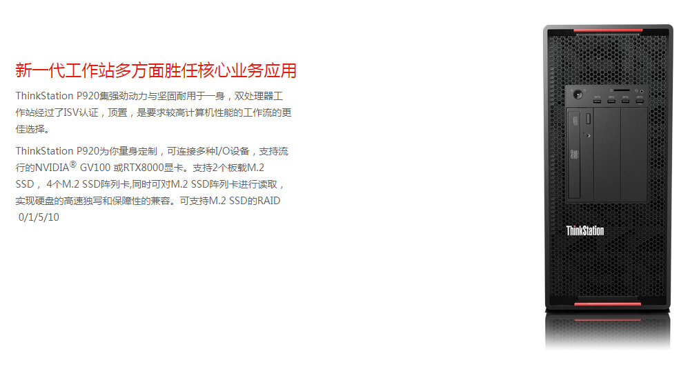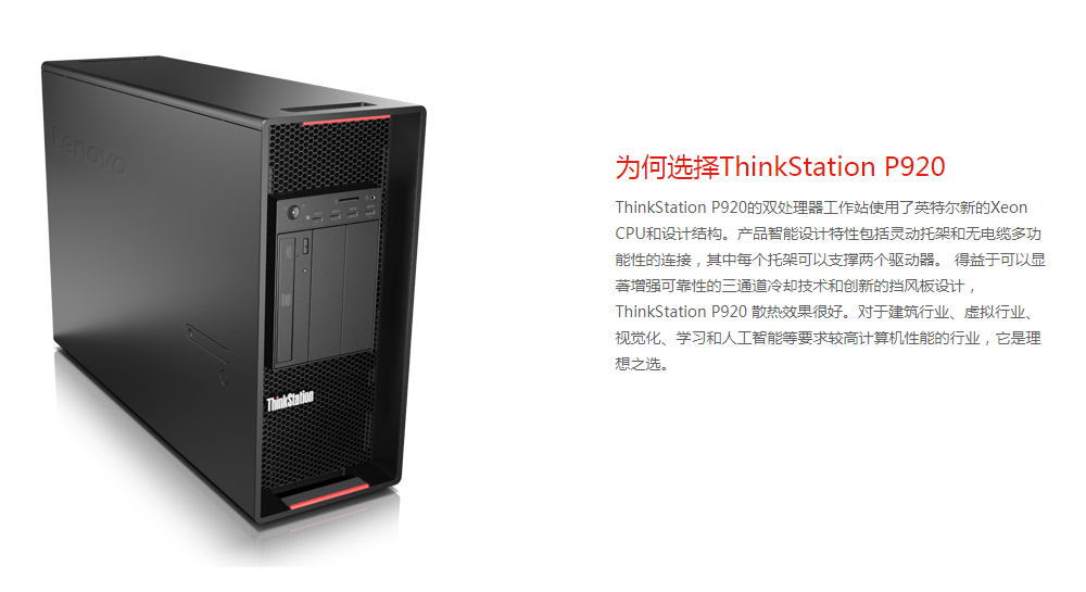 ThinkStation P920集強勁動力與堅固耐用于一身,雙處理器工作站經(jīng)過了ISV認證,頂置,是要求較高計算機性能的工作流的更佳選擇。
